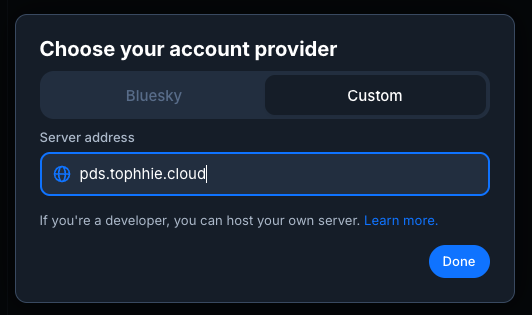 - However, when you log in, change the custom server to "pds.tophhie.cloud" instead of "tophhie.social".